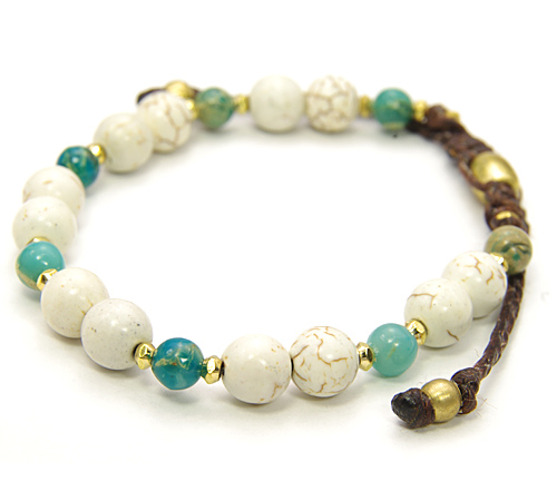 編みこみのワックスコードに8.5mmのホワイトターコイズビーズとメタルパーツ(真鍮)、オパールビーズをバランスよく配置したブレスレット。 エンド部分で長さの調整が可能です。 自分へのご褒美・プレゼントにも大変喜ばれます。 LAST HEAVEN最高傑作の逸品です。