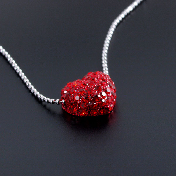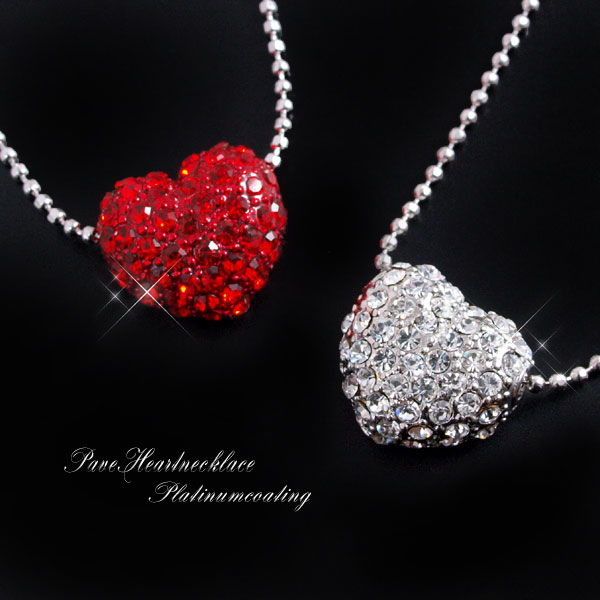 ◆ぷっくりパヴェハートネックレス /ロジウム レッドクリスタル クリア ボールチェーン レディース