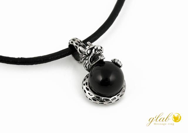ドラゴンがオニキスを守るように抱えた高級感あるモチーフ。