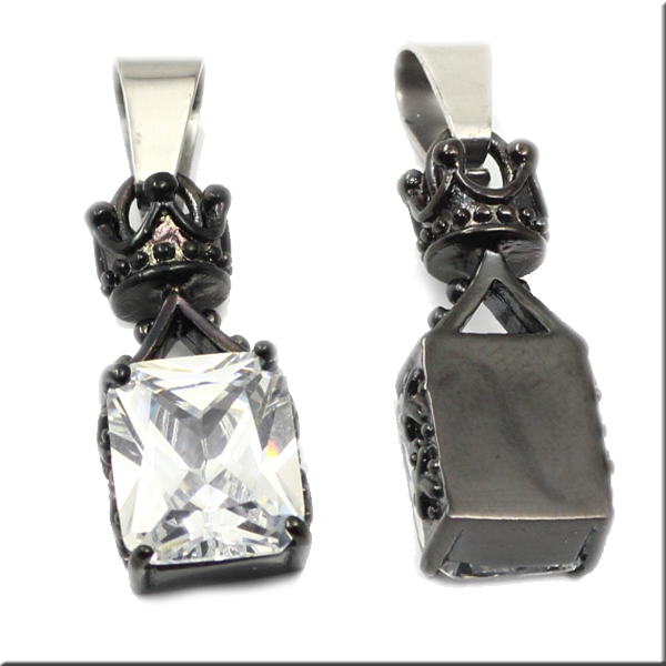 ブラッククラウンスクエアダイヤステンレスネックレス