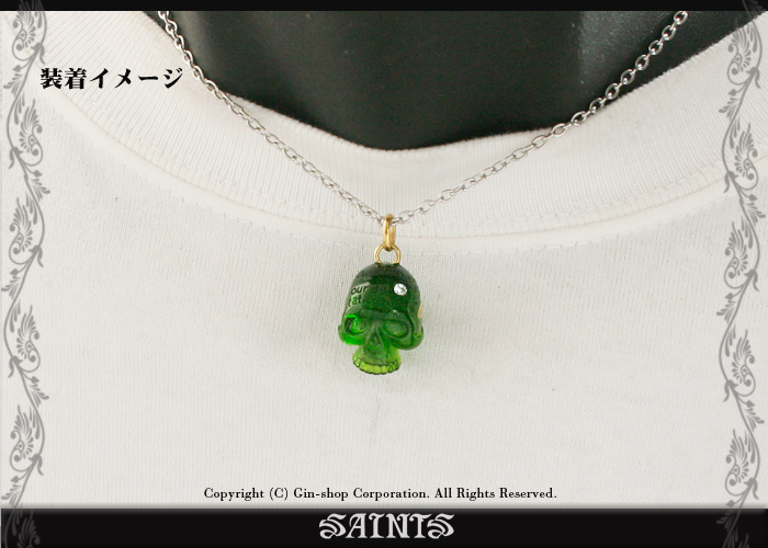 特殊なカラー樹脂で作られた、大人気のスカルネックレス。