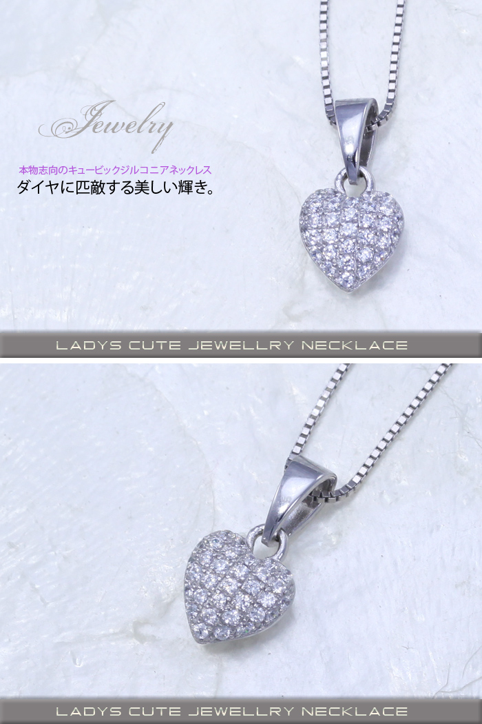 女性を美しく魅了させる愛らしいハートが美しい胸元を演出する女子力アップの本物志向のシルバージュエリーです。 スワロフスキーの繊細でキメの細かい石がハート全体にパヴェ状にモチーフに羅列して胸元でキラキラにエレガントに輝きます。女子力アップ間違いないしの逸品です。