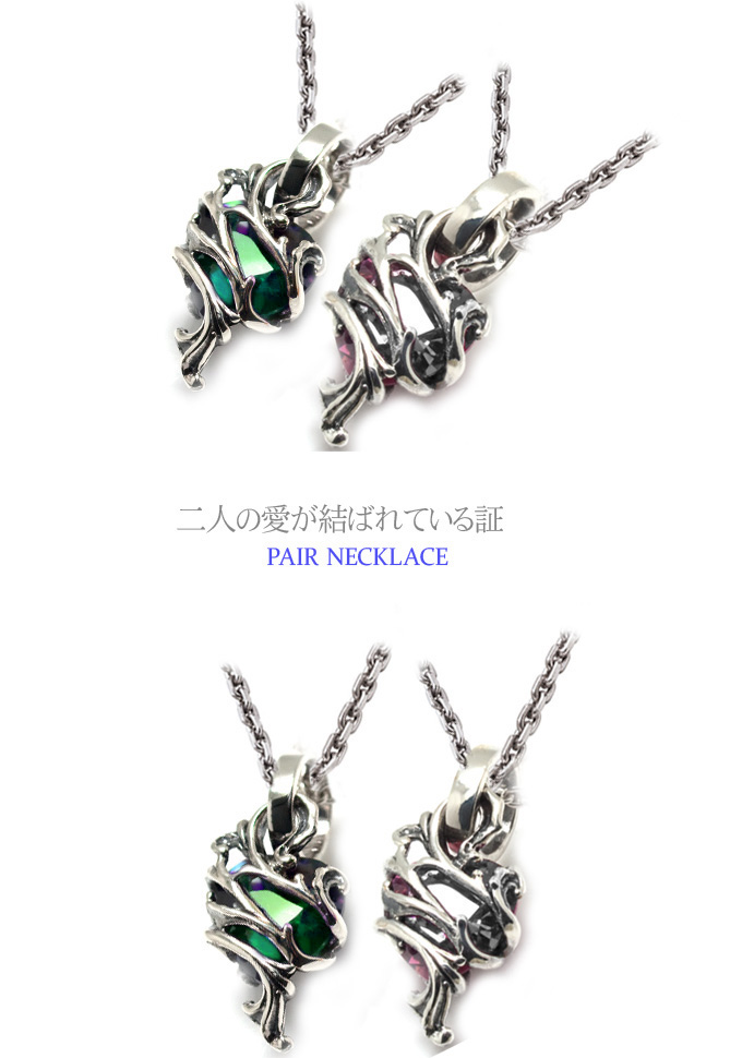ハートシェイプのジルコニア×植物モチーフがシックなペアネックレス。光を取り込むフォルムが、ジルコニアをツタの狭間から魅惑的にきらめかせます!2人の愛が結ばれてる証のペアネックレスです。 シルバーアクセサリーブランドRoyal Justyのペアネックレスはどんな装いにも プレゼントやギフトにも大変喜ばれます!