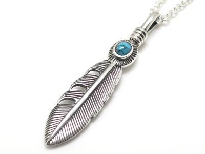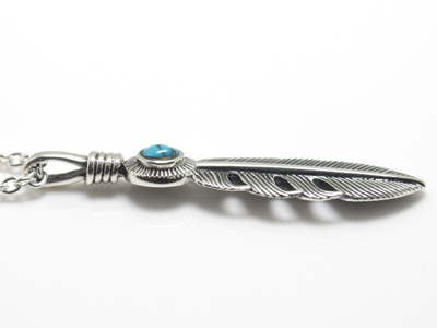 まっすぐなフェザーモチーフペンダント。アクセントには、人間関係を円滑にしたり、災難を知らせ付けている人の身代わりになってくれる効果があるといわれているターコイズがあしらわれています。縦長のフォルムで首元をすっきり見せてくれる秀逸なアイテムです。 先進的なイメージを主張する存在感抜群のシルバーペンダントです。 プレゼントやギフトにも大変喜ばれる本物志向の シルバーアクセサリーブランドRoyal Justyのメンズシルバーペンダントはどんな装いにも キマルのであなただけのオンリーワンを発揮していろいろな場面で大活躍してくれます!
