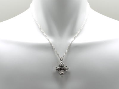 ヴァジュラのひとつである羯磨(かつま)と金剛鈴(こんごうれい)を組み合わせたデザイン。祈願などの時に使用する金剛鈴のモチーフは、揺らすと音が鳴ります。ヴァジュラは「vaj(動く)+ram(光)」を語源とする、密教やチベット仏教における法具。ドルジェ(ドージェ)とも呼ばれています。インド神話の武器がモチーフで、困難や壁を乗り越えるための力が宿っているといわれています。医療用器具などにも使用されているサージカルステンレスで作成されたアクセサリーは、人体に対して金属アレルギーを起こしにくい為、アレルギー体質の方にもカラダに優しい